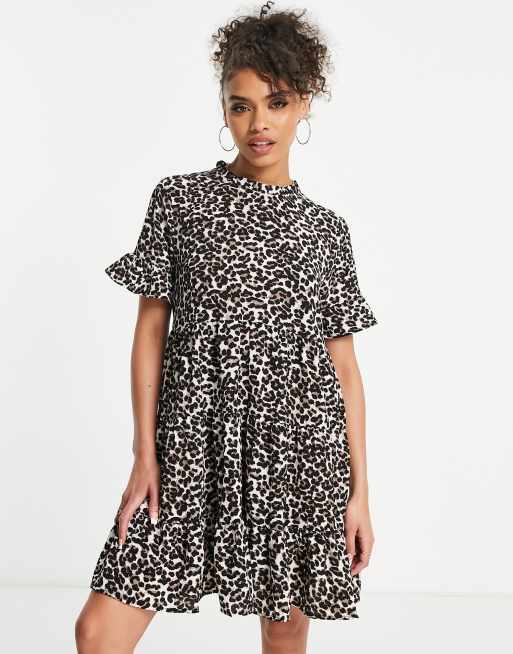 Vestido corto amplio de manga corta con estampado de leopardo Alba de JDY