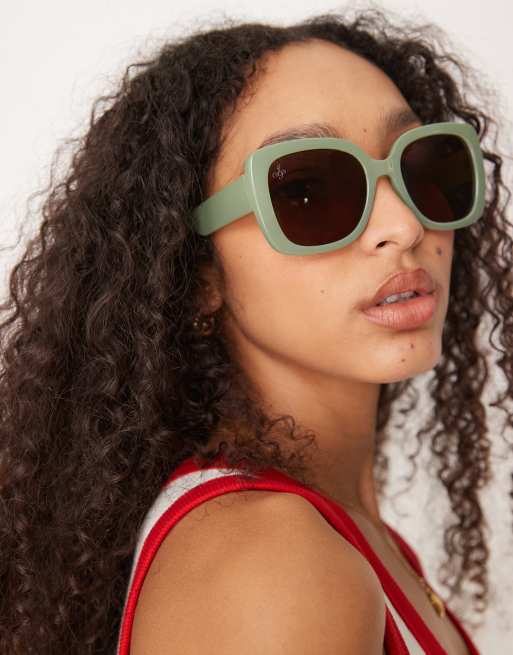 Gafas de sol verde salvia con montura gruesa cuadrada de Jeepers Peepers