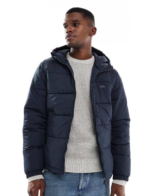 Chaqueta azul marino acolchada con capucha de JJ Rebel
