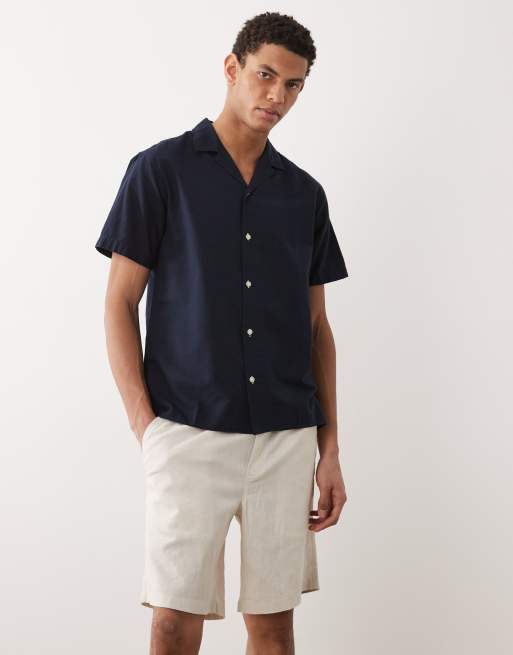 Pantalones cortos beis con cordón ajustable de mezcla de lino de JJ Rebel