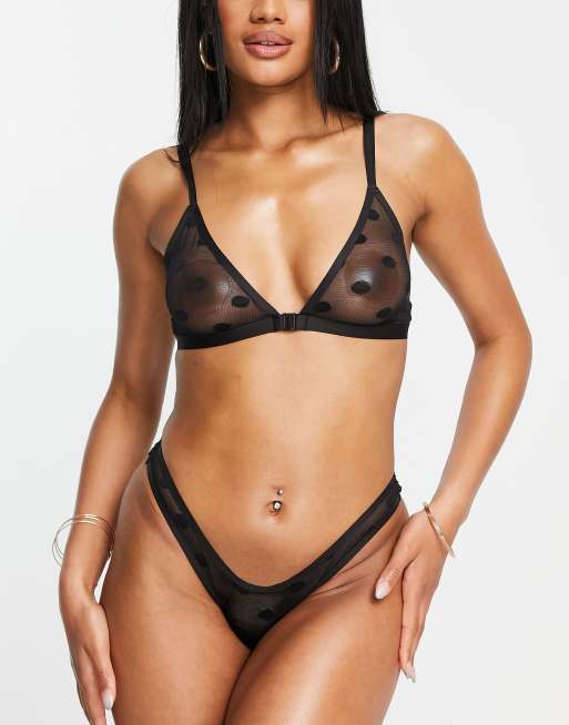 Bralette negro triangular con cierre delantero con estampado de lunares de malla de Jojoe - BLACK