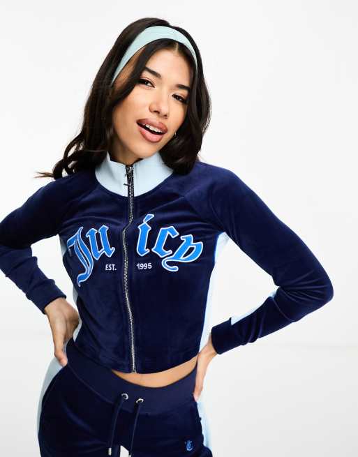 Chaqueta de chándal azul con cremallera y logo universitario de velour de Juicy Couture (parte de un conjunto)