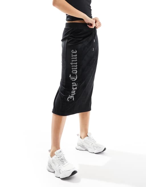 Falda midi negra con logo de velour de Juicy Couture
