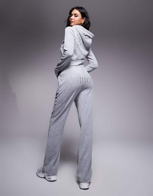 Joggers grises de velour con logo de strass de Juicy Couture (parte de un conjunto)