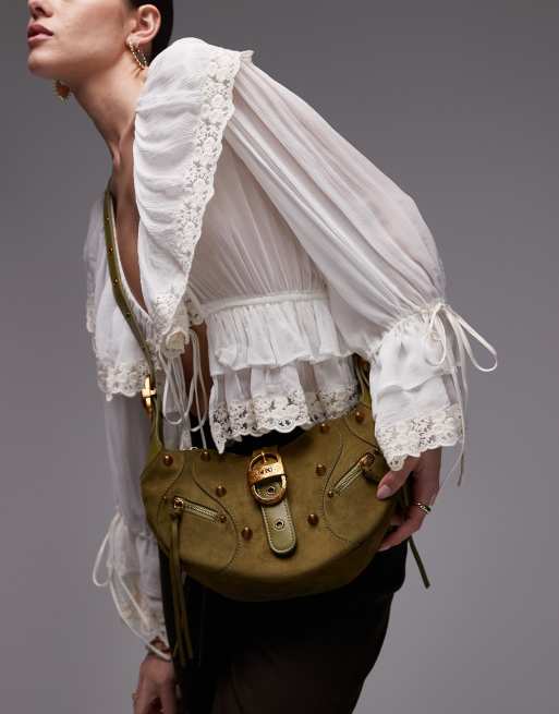 Bolso de hombro verde oliva con tachuelas de antelina Tessa de JW PEI