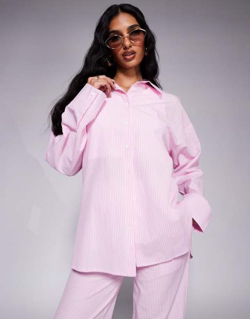 Camisa a rayas rosas extragrande con botones de popelina exclusiva de mezcla de algodón de Kaiia (parte de un conjunto)