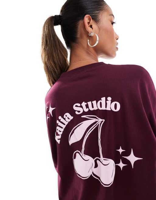Camiseta burdeos extragrande con estampado de cerezas en la espalda de Kaiia (parte de un conjunto)