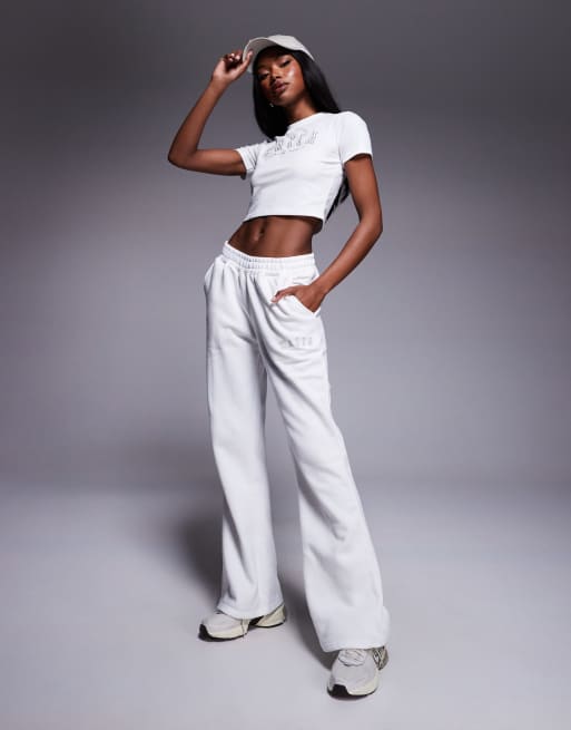 Conjunto blanco y arena de joggers, sudadera con capucha y camiseta con diseño encogido y logo bordado de Kaiia