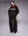 Conjunto marrón chocolate de pantalones de pernera ancha y sudadera con capucha y logo bordado de punto de Kaiia