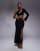 Conjunto negro de falda larga y top corto ceñido y asimétrico con una manga, diseño de doble capa y abertura exclusivo de Kaiia