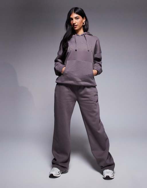 Joggers marrón topo de pernera ancha de tejido rico en algodón de Kaiia (parte de un conjunto)