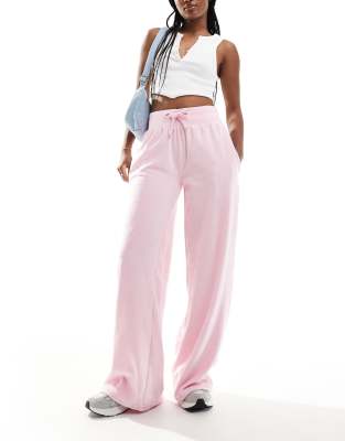 Joggers rosa claro de pernera ancha con cordón ajustable de tejido de rizo de Kaiia