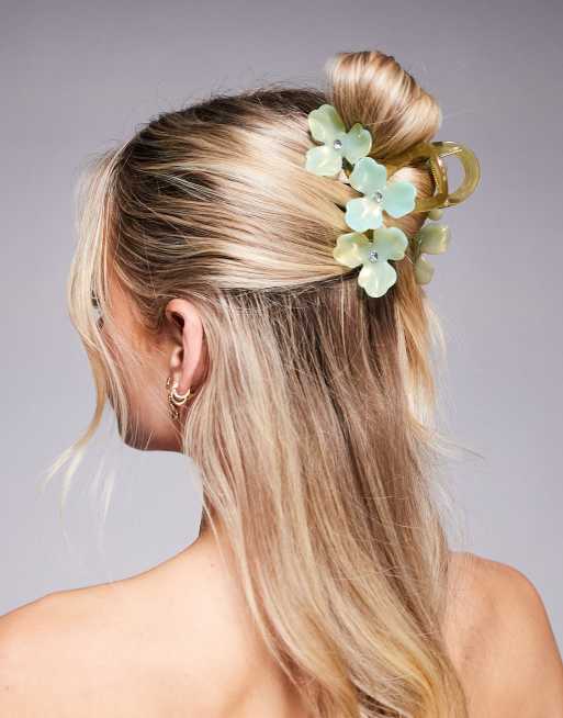 Pinza para el cabello verde extragrande con diseño de flores de Kaiia