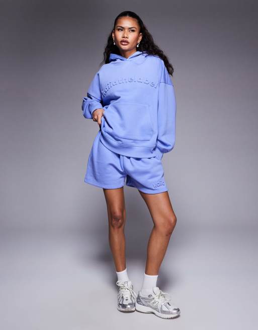 Sudadera azul aciano extragrande con capucha y logo en relieve de Kaiia (parte de un conjunto)