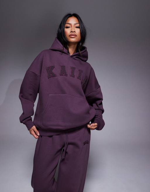 Sudadera morado intenso extragrande con capucha y logo bordado de tejido rico en algodón de Kaiia (parte de un conjunto)