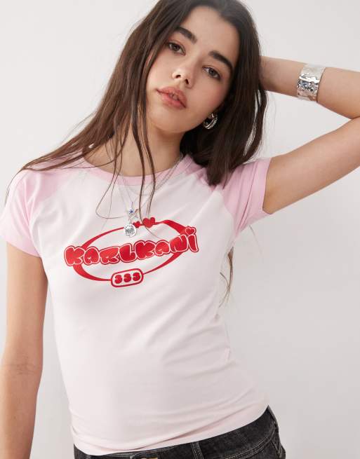 Camiseta blanca con diseño encogido y estampado de corazón y texto de Karl Kani
