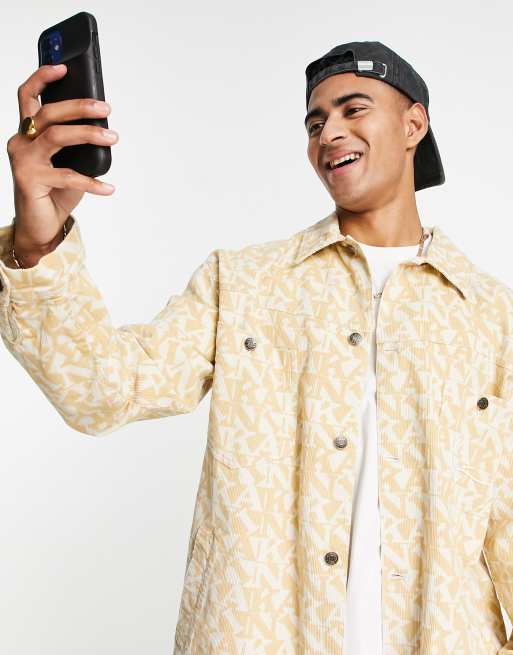Sobrecamisa color arena con estampado integral del logo y detalle de firma de Karl Kani (parte de un conjunto)