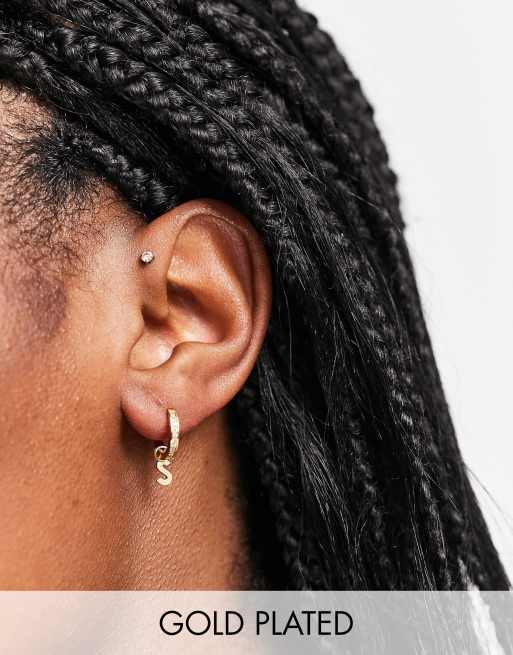 Pendientes de aro pequeños con incrustaciones y charm de letra S chapado en oro de Kate Spade