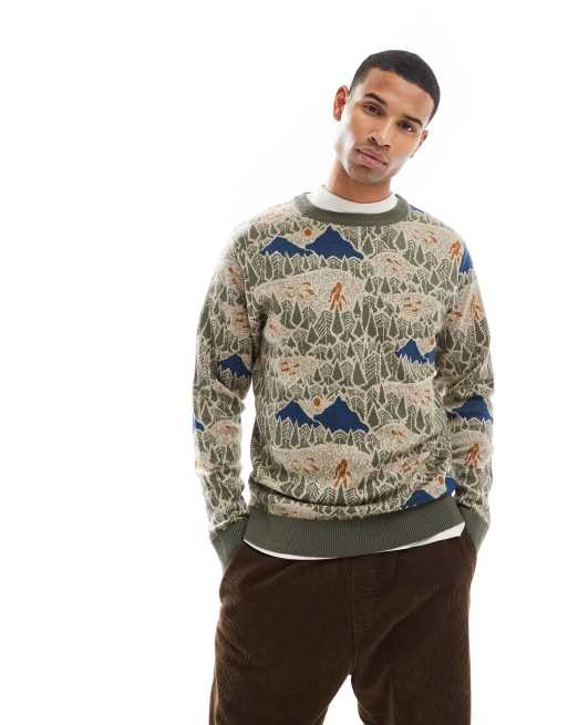 Jersey beis con estampado de montañas de estilo retro de jacquard Highline de Kavu