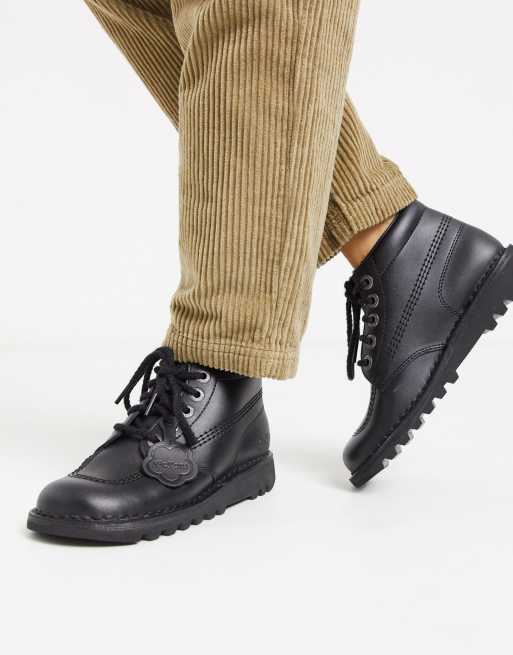 Botas negras planas de cuero Kick Hi de Kickers