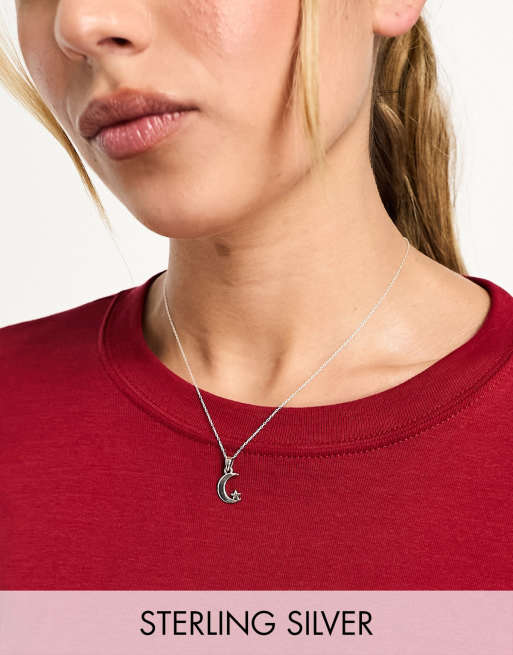 Collar plateado de cadena con luna creciente y estrella de plata de ley de Kingsley Ryan