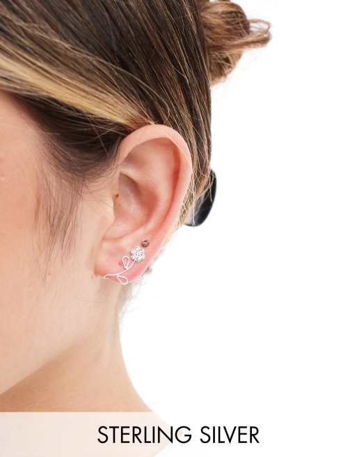 Pendiente trepador plateado con diseño de flor de plata de ley con gema de Kingsley Ryan