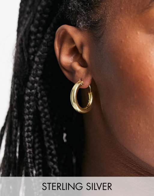 Pendientes de aro de 25 mm con diseño de tubo de plata de ley chapados en oro de Kingsley Ryan