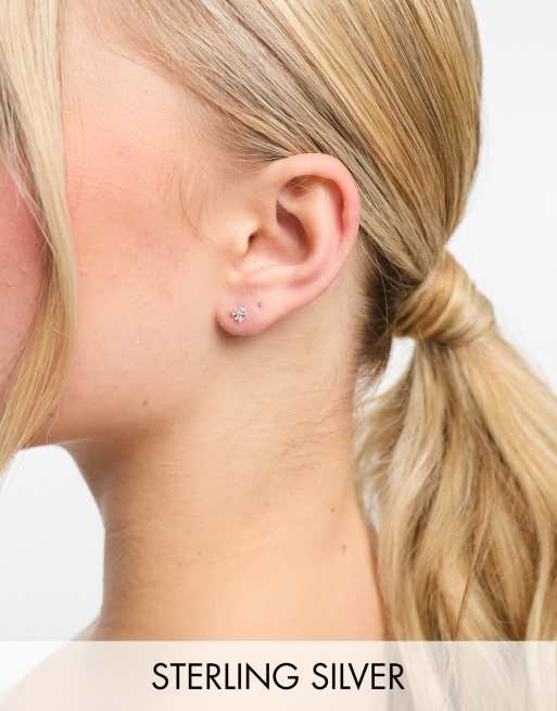 Pendientes de botón con diseño agrupado de 3 piedras de plata de ley de Kinglsey Ryan
