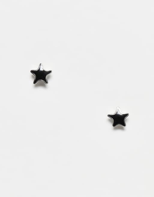 Pendientes de botón con diseño de estrella negra de esmalte de Kingsley Ryan