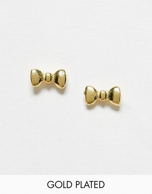 Pendientes de botón con diseño de lazo chapados en oro de Kingsley Ryan