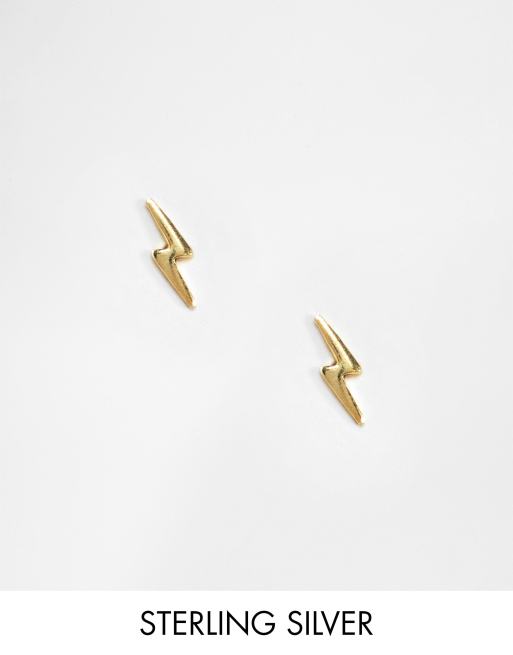 Pendientes de botón con diseño de rayo chapados en oro de Kingsley Ryan