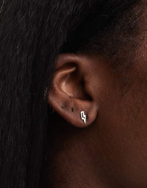 Pendientes de botón con diseño de relámpago abierto de plata de ley de Kingsley Ryan