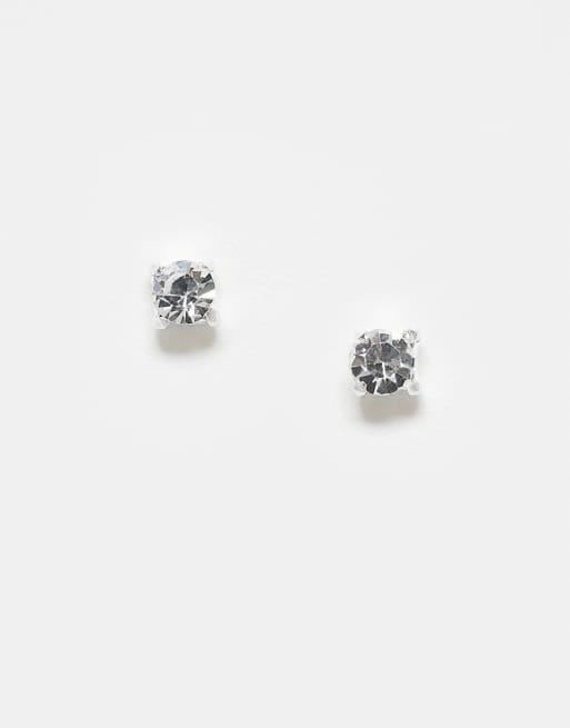Pendientes de botón de 3 mm con gema redonda de plata de ley de Kingsley Ryan