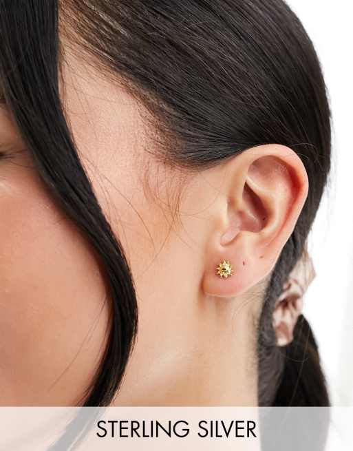 Pendientes de botón dorados con diseño de flor sonriente de plata de ley de Kingsley Ryan