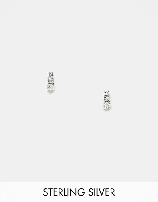 Pendientes de botón largos con diseño de tres gemas de plata de ley de Kingsley Ryan