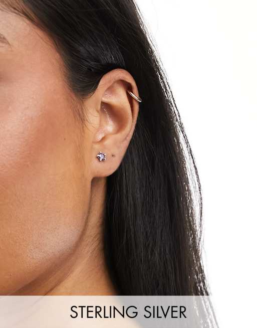Pendientes de botón morados en forma de estrella con cristal de amatista de plata de ley de Kingsley Ryan