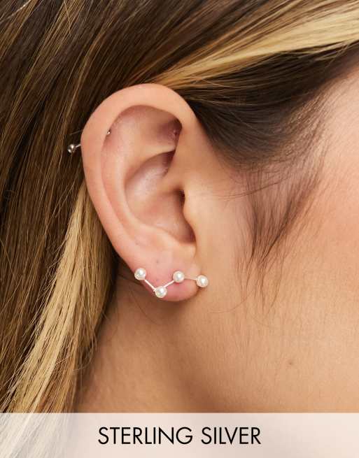 Pendientes trepadores plateados con diseño de constelación de perlas de plata de ley de Kingsley Ryan
