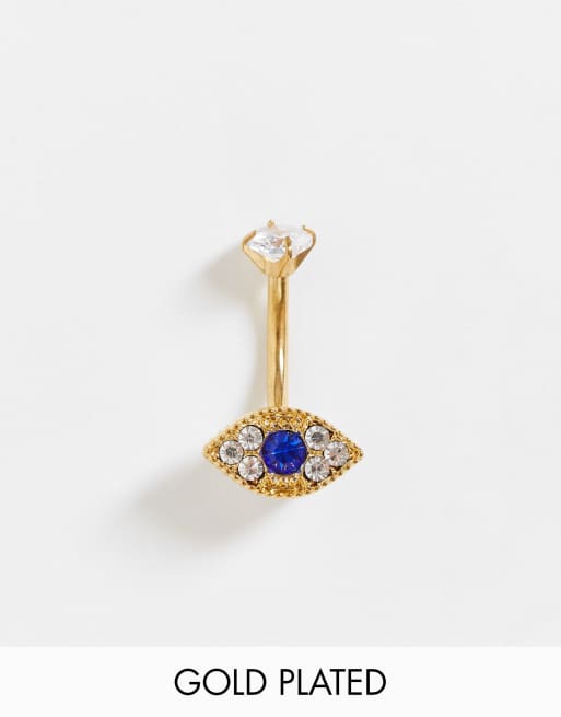 Piercing para el ombligo chapado en oro con diseño de ojo turco de Kingsley Ryan
