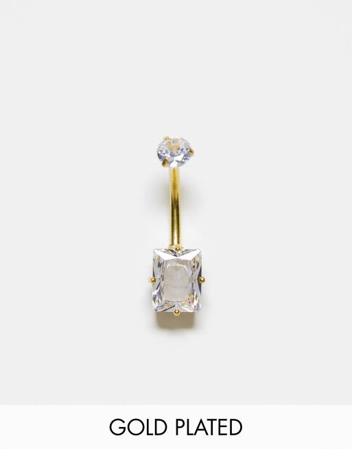 Piercing para el ombligo dorado chapado en oro con cristal cuadrado de Kingsley Ryan