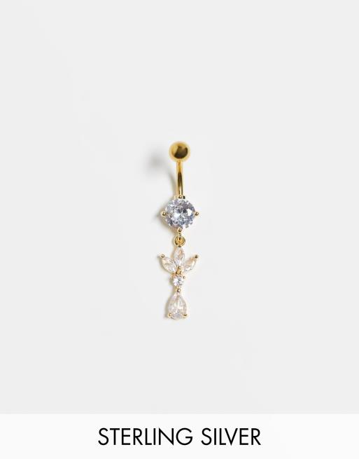 Piercing para el ombligo dorado con diseño colgante de pétalos chapado en oro de Kingsley Ryan