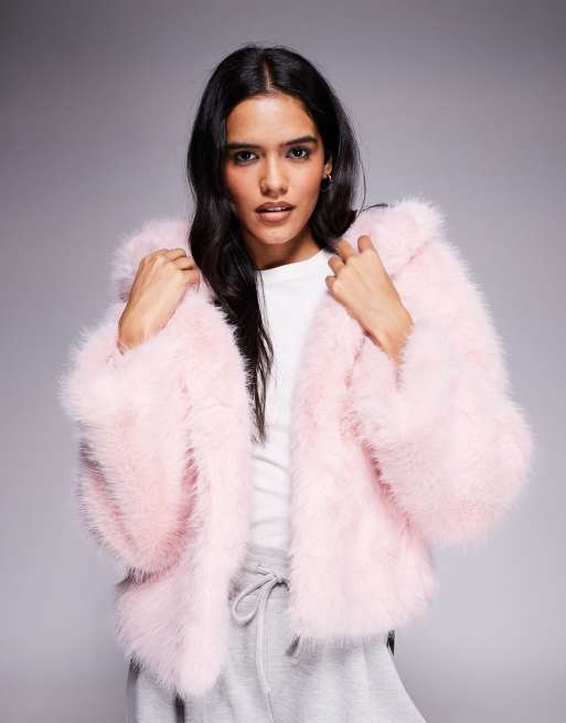 Chaqueta corta rosa con capucha de piel sintética Faye de Kiwi & Co