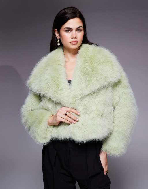 Chaqueta corta verde menta con detalle de solapas extragrandes de piel sintética Lyla de Kiwi & Co