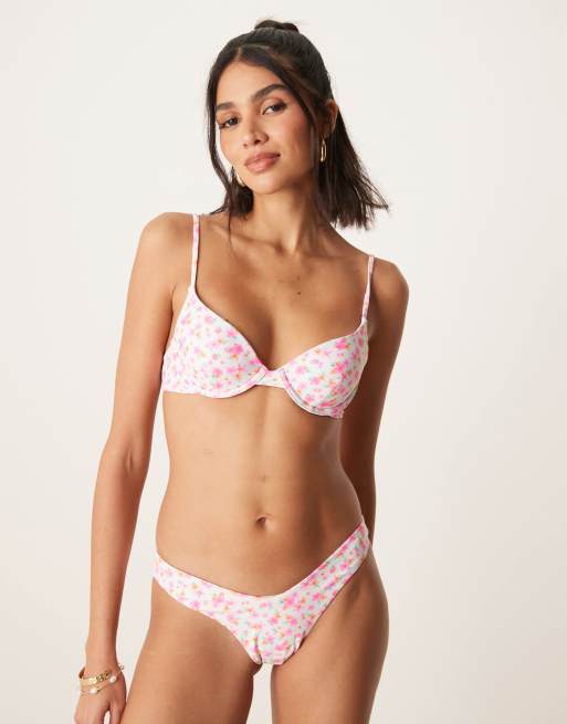 Bikini rosa claro con estampado floral Flamingo Flora de Kulani Kinis