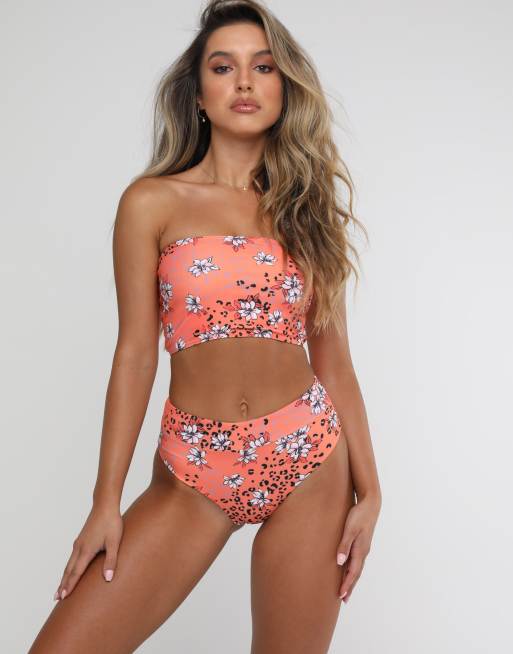 Braguitas de bikini rojas de talle alto y pernera alta con estampado animal y floral de Kulani Kinis