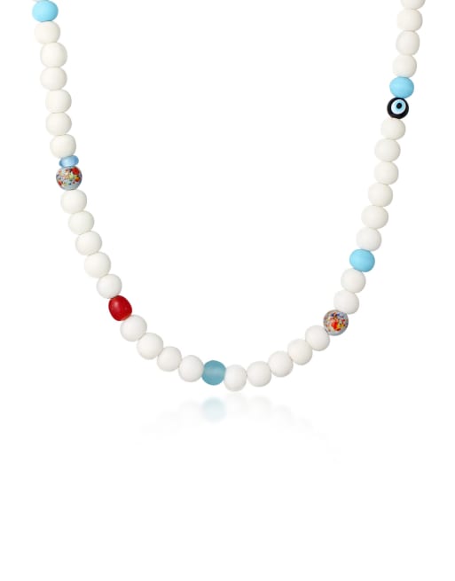 Collar de cuentas blancas de vidrio con detalle de cara sonriente de plata de ley 925 para hombre de Kuzzoi