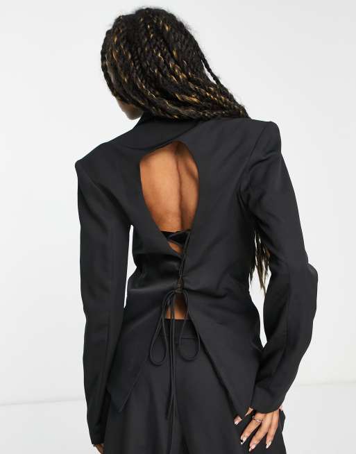 Americana negra con espalda al aire y detalle de cordones de Kyo The Brand