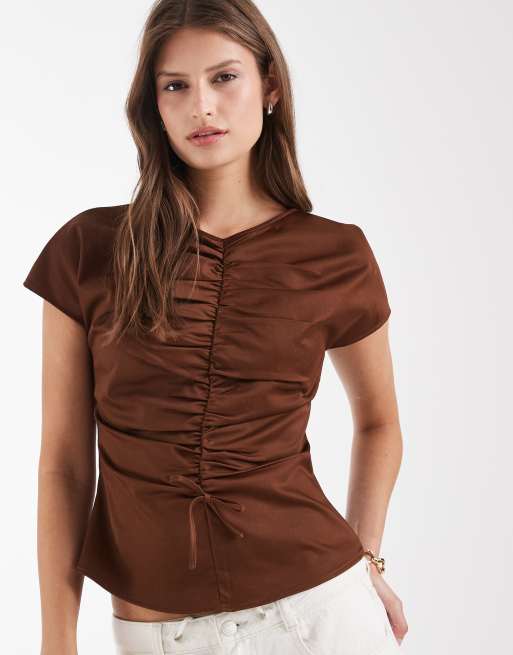 Laagam - Top marrón fruncido de manga corta Simone