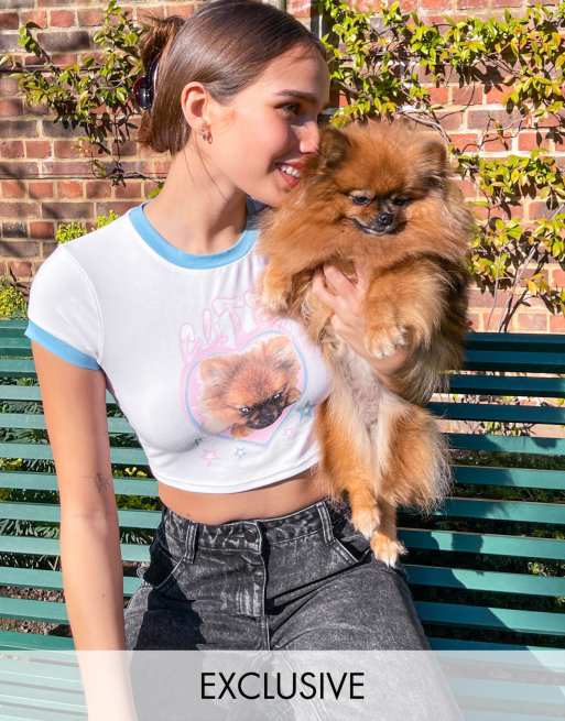 Camiseta corta con ribetes y estampado de cachorro de Labelrail x Hana Cross