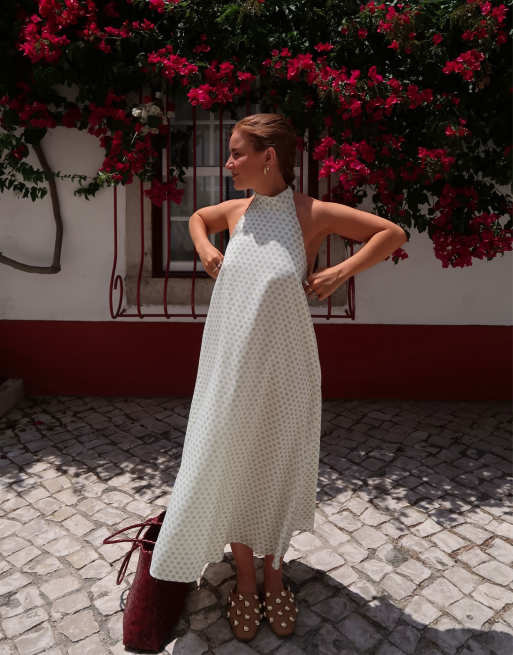 Vestido largo verde con estampado de lunares de chifón de Labelrail x Rebecca Olivia