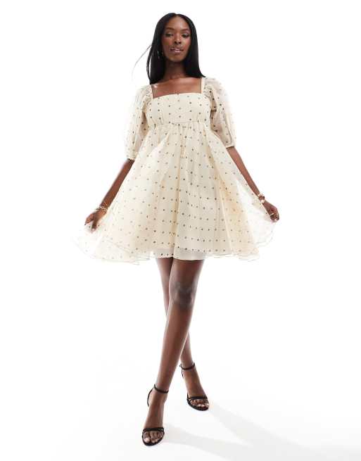 Vestido corto estilo babydoll con cuello cuadrado y estampado de lunares de organza de Lace & Beads